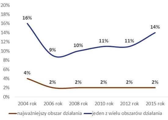 Choć odsetek organizacji, dla których zagadnienia związane z ekologią i ochroną środowiska są najważniejszym obszarem aktywności, utrzymuje się od wielu lat na podobnym (niskim) poziomie, to przybywa organizacji, które zajmują się tą tematyką dodatkowo. Obecnie coraz częściej działania związane z ekologią i ochroną środowiska podejmują stowarzyszenia i fundacje, dla których podstawowym obszarem aktywności jest edukacja i wychowanie, sport, kultura, a także rozwój lokalny.