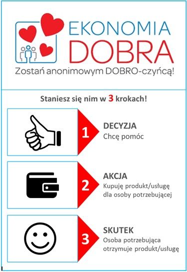 W odróżnieniu do tej formy wsparcia, w akcji „Ekonomia Dobra”, potrzebujący będzie mógł odebrać nie tylko „zawieszony” produkt, ale i usługę. Będzie mogła nią być np. kawa lub obiad, ale i usługa rehabilitacyjna, remontowa czy opiekuńcza. To dobro będą rozdawać podmioty ekonomii społecznej biorące udział w akcji, oznaczone specjalnym logotypem.