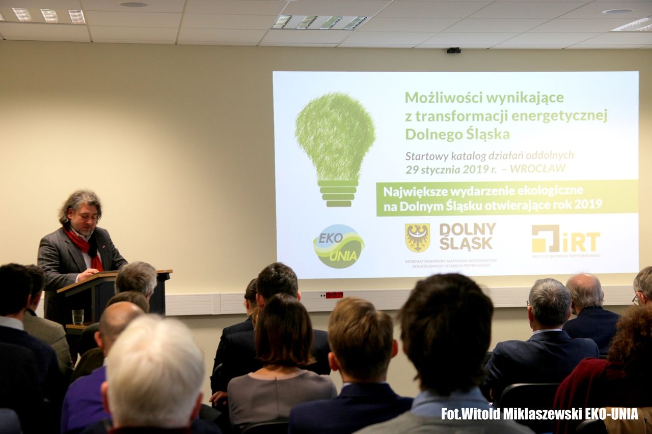 W konferencji i debacie zorganizowanej przez Stowarzyszenie Ekologiczne EKO-UNIA wzięli udział eksperci i politycy samorządowi. Patronat Honorowy nad wydarzeniem objął Marszałek Województwa Dolnośląskiego Cezary Przybylski. – To jest rewolucja cywilizacyjna. Celem ponadpartyjnego programu transformacji energetycznej i ochrony klimatu musi być zastąpienie, na każdym szczeblu lokalnym: od domu, osiedla, gminy, klastra OZE, i regionu, paliw kopalnych: węgla, ropy i gazu czystymi źródłami energii, z naciskiem na ich efektywne wykorzystanie. Plan Zielonych, dziś już przychylnie witany przez PSL, SLD, Nowoczesną, ruchy miejskie i ekologiczne – zakłada między innymi, że pierwsze istotne zmiany w polskiej energetyce miałyby zajść już do 2030 roku. Całkowita rezygnacja np. z węgla w ciepłownictwie czy transporcie do 2050 – tłumaczy Radosław Gawlik, prezes Stowarzyszenia Ekologicznego EKO-UNIA.