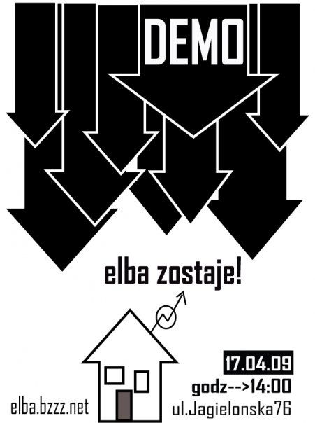 Redakcja warszawa.ngo.pl dowiedziała się także, że 17 kwietnia przy ul. Jagiellońskiej 76 o godzinie 14:00 odbędzie się demonstracja przed siedzibą firmy Stora Enso Recycling Sp. z o.o. mająca na celu przekonanie zarządu firmy do zmiany swojej decyzji dotyczącej wyburzenia budynków niezależnego centrum kultury skłotu "Elba".
