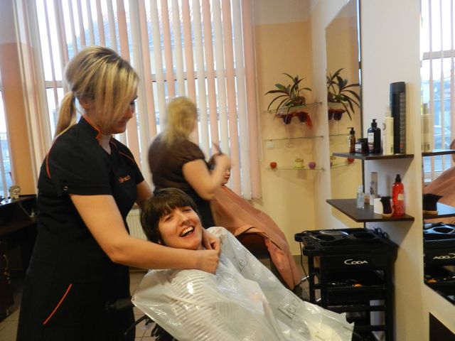Dzięki uprzejmości p. Magdy (właścicielki salonu) uczestniczki ŚDS miały okazję obciąć oraz pomalować włosy przy zastosowaniu nowoczesnych trendów fryzjerskich. Zmiana wizerunku w pełni spełniła oczekiwania wszystkich trzech Pań. Takie działania dają nadzieję na przełamywanie barier i stereotypów myślowych na temat osób niepełnoprawnych intelektualnie.