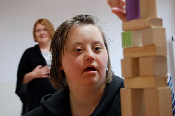 – Kochani, zostało wam 5 minut. Pamiętajcie o tym, że macie ze sobą współpracować. Współ-pra-co-wać! Musicie się dogadać, słuchać nawzajem. Ma powstać jedna wieża, jak najwyższa i jak najpiękniejsza – podkreśla kolejny raz Kasia, która prowadzi doradztwo grupowe dla osób z niepełnosprawnością intelektualną.