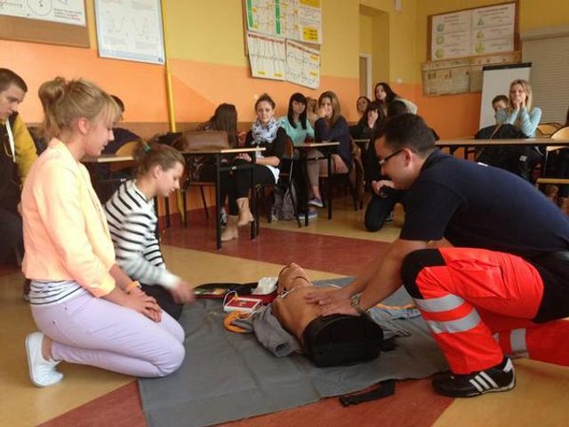 Młodzież poznawała zasady resuscytacji ze szczególnym naciskiem na naukę posługiwania się automatycznym defibrylatorem AED. Atmosfera była bardzo przyjazna i mimo że zajęcia odbywały się po obowiązkowych zajęciach szkolnych chętnych nie brakowało.