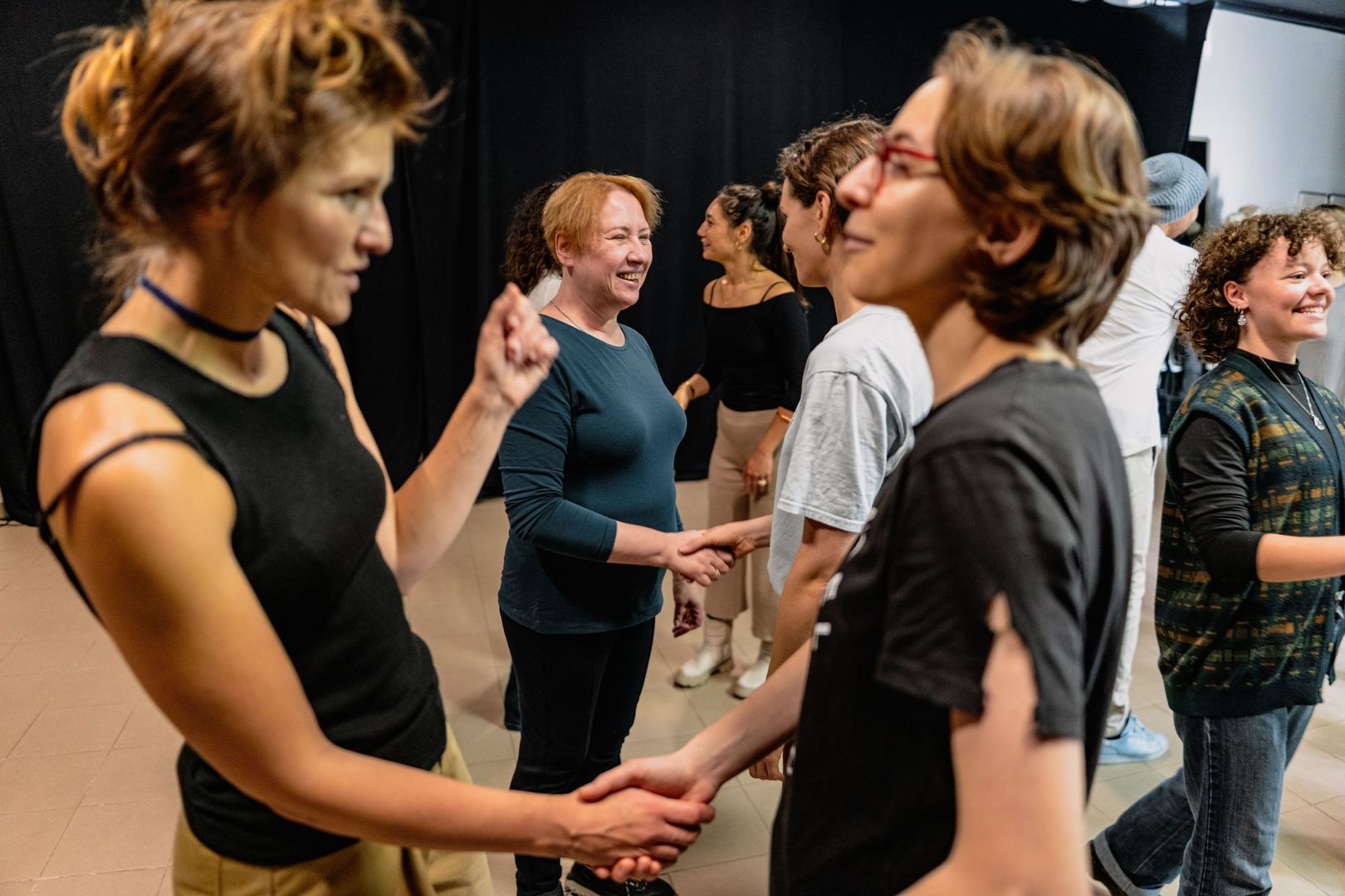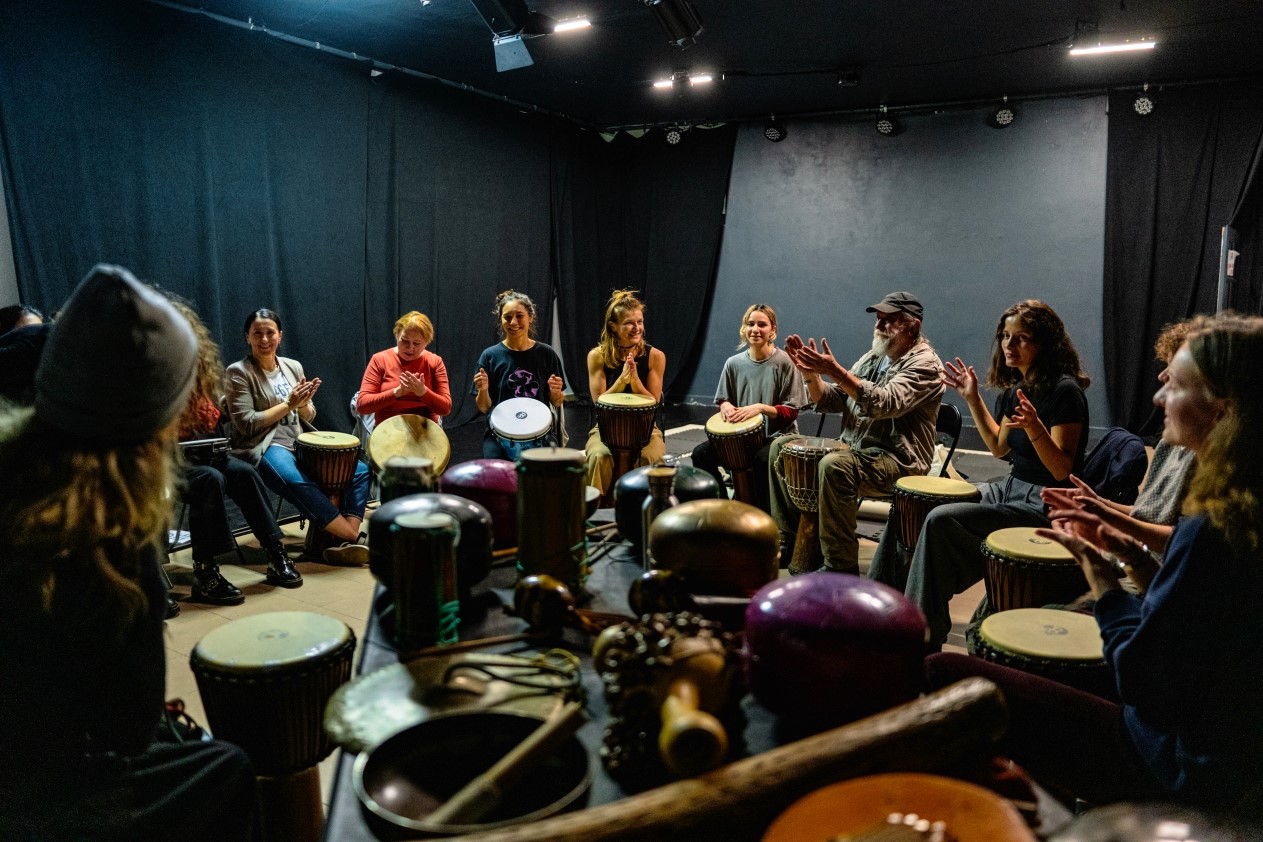 Program warsztatów, zrealizowany w dniach 27–28 października 2025 r., łączył trzy praktyki: somatyczny taniec, pracę z głosem i krąg bębnów. Teatr Wschodni był miejscem dwudniowego, kreatywnego wydarzenia, a spotkanie rozpoczęliśmy od rozmowy z jego szefem, Łukaszem Wójtowiczem, o lokalnym życiu kulturalnym oraz wyzwaniach, które wpływają na codzienną pracę instytucji i organizacji.