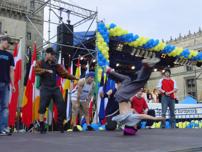 Wokół sceny rozstawiono tzw. "Miasteczko europejskie" -