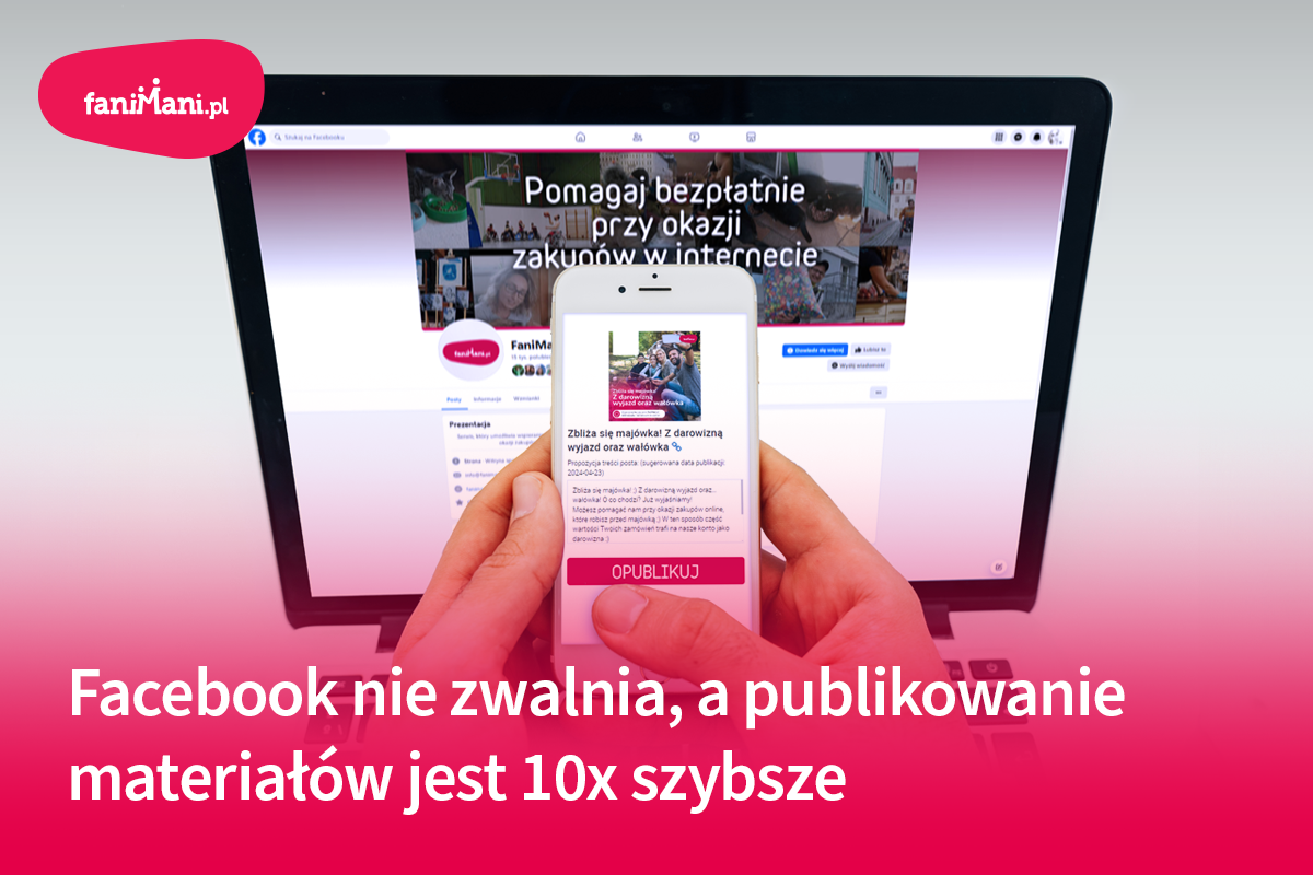 Innym sposobem na planowanie postów może być również korzystanie z personalizowanych dla Twojej organizacji materiałów promocyjnych dostępnych na fanimani.pl/materialy. Funkcja publikowania i planowania postów na Facebooka bezpośrednio z poziomu materiałów to absolutna świeżynka. Dzięki temu wystarczy, że raz w miesiącu zajrzysz do materiałów i zaplanujesz posty na cały miesiąc!
