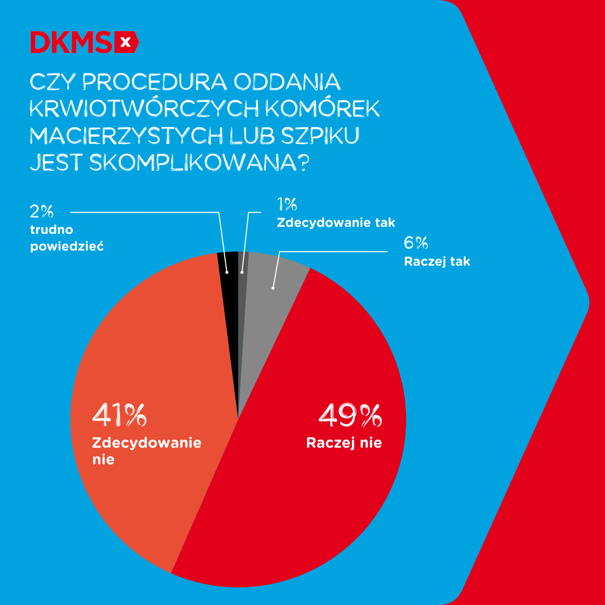 Fundacja DKMS wraz z agencją badawczą IMAS przeprowadziła badanie, w którym po raz pierwszy udział wzięli faktyczni dawcy szpiku, czyli osoby, które już miały okazję dać komuś szansę na życie. Czy według nich procedura oddania krwiotwórczych komórek macierzystych jest skomplikowana?