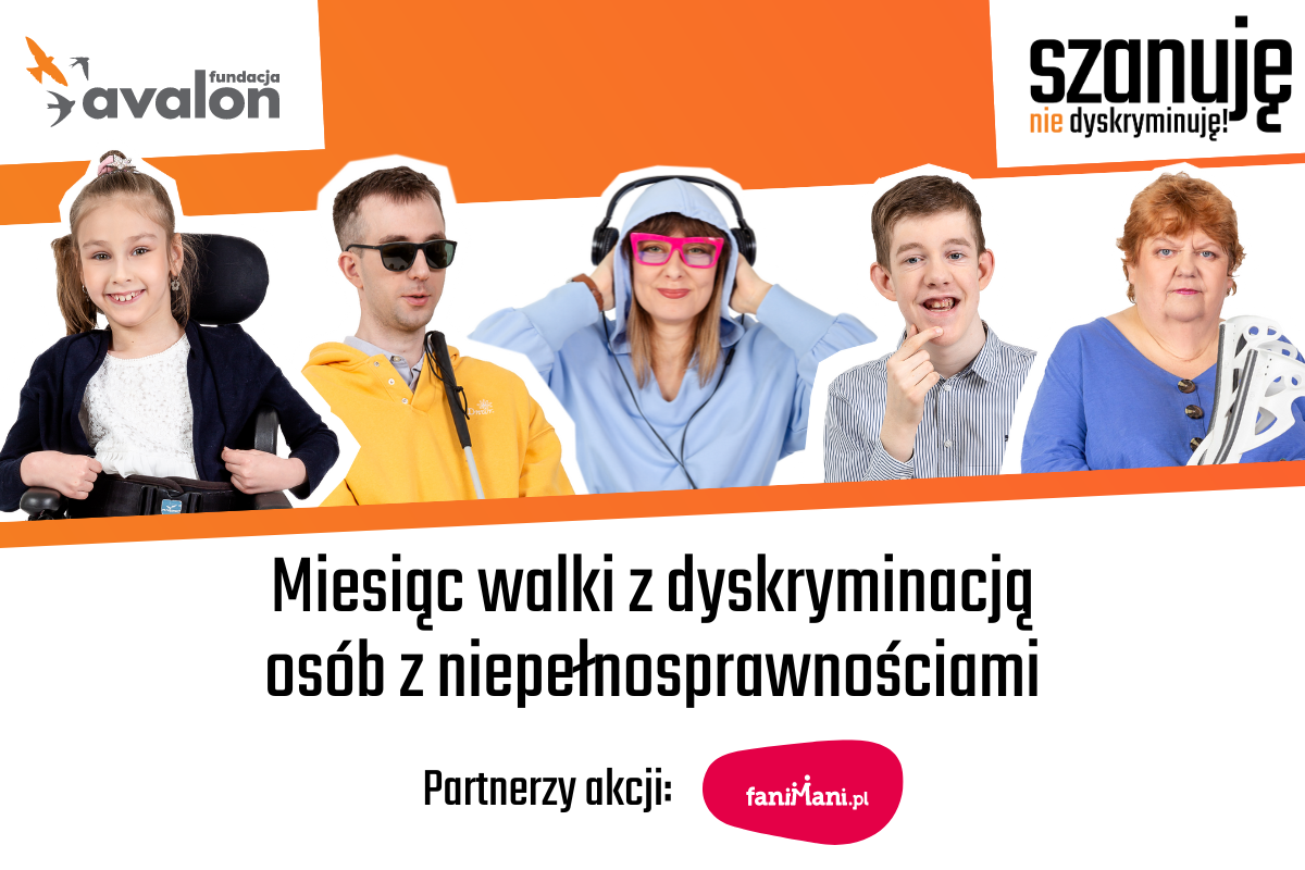 Z inicjatywy Fundacji Avalon już po raz drugi obchodzimy Miesiąc Walki z Dyskryminacją Osób z Niepełnosprawnościami pod hasłem “Szanuję, nie dyskryminuję!”. Tegoroczna edycja jest poświęcona problematyce postrzegania i traktowania osób z niepełnosprawnościami.