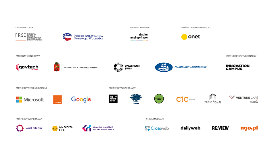 Patroni Honorowi: GOVTECH Polska, Prezydent M.st. Warszawy, Akademia Leona Koźmińskiego, Uniwersytet SWPS