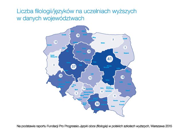 Studiowanie filologii, łączone do tej pory z perspektywą pracy w szkolnictwie lub przy tłumaczeniach, jest obecnie szansą na karierę w biznesie. Według najnowszego raportu Fundacji kierunki filologiczne oferowane obecnie na 102 polskich uczelniach obejmują nauczanie aż 50 języków obcych. Najpopularniejszymi są nieprzerwanie języki angielski i niemiecki oferowane odpowiednio przez 99 i 57 polskich uczelni. Zbyt mało jest jednak absolwentów posługujących się biegle innymi językami.
