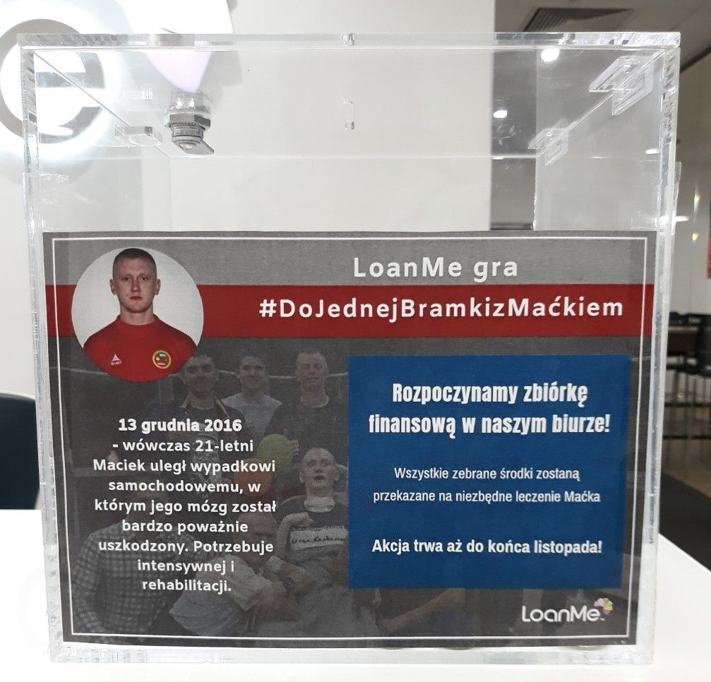 Od początku września do końca listopada w LoanMe trwała zbiórka finansowa dla Maćka. W trakcie akcji firma zorganizowała konkurs fotograficzny na Facebooku, a także konkursy wewnątrzfirmowe. Pracownicy zebrali do puszki prawie 1000 zł! Środki zostaną przekazane na rehabilitację Maćka.