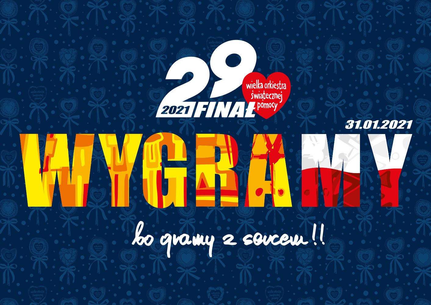 29. Finał WOŚP odbędzie się 31 stycznia 2021 roku. W zbiórkę, która dedykowana będzie wsparciu dla laryngologii, otolaryngologii i diagnostyce głowy, włączy się 120 tys. wolontariuszy, zarejestrowanych w Sztabach na całym świecie. Zbiórka realizowana będzie również przy wykorzystaniu kanałów elektronicznych. Kweście towarzyszyć będą wydarzenia organizowane przez lokalne Sztaby, a także 15. bieg “Policz się z cukrzycą”, który realizowany będzie w formie wirtualnej. W Warszawie centrum wydarzeń stanowić będzie studio telewizyjne na Placu Defilad, w którym odbędą się koncerty m.in. zespołu Dżem, Voo Voo, Kwiat Jabłoni i Piersi. Transmisja internetowa wydarzenia rozpocznie się w sobotę (30 stycznia) o godz. 21:00 i potrwa nieprzerwanie 27 godzin.