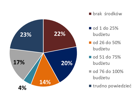 Stabilne finansowanie działalności w dłuższej perspektywie, a więc zagwarantowanie środków na 2016 rok, dla większości organizacji jest poza zasięgiem. W marcu 2015 roku 72% organizacji nie miało zapewnionych żadnych środków na kolejny rok. 15% stowarzyszeń i fundacji mogło na pewno liczyć na nie więcej niż ¼ całości przychodów, między ¼ a połową budżetu miało 5% organizacji. Ponad połowę środków na 2016 rok miało zapewnione 8% organizacji.