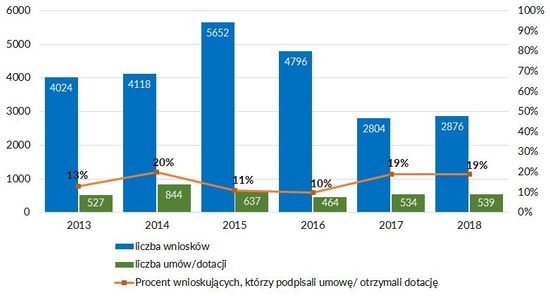 W latach 2017-2018 trafiło do nich około 35% dotacji w związku z dodatkowymi punktami dla podmiotów pochodzących z miejscowości do 25 tysięcy mieszkańców (na podstawie kryteriów strategicznych).