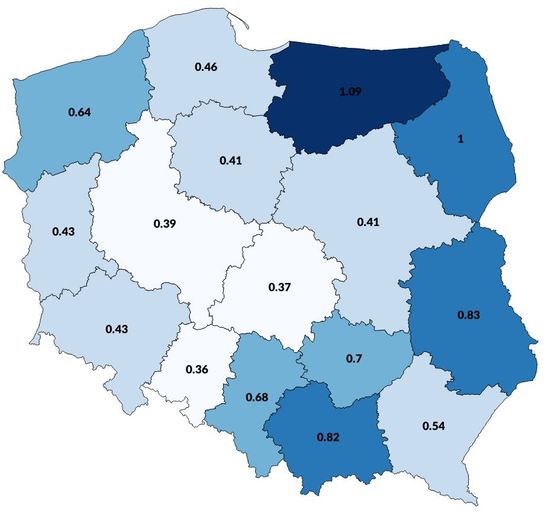 W dalszym ciągu w części województw większy był procent składających wnioski niż otrzymujących dotację: jak zwykle w mazowieckim, ale też wielkopolskim, pomorskim i – tu zaskoczenie – opolskim i kujawsko-pomorskim, a więc w tych regionach, gdzie zawsze wniosków i dotacji było mało. Były też województwa, w którym miała miejsce sytuacja odwrotna, a więc większy był udział organizacji, które otrzymały dotacje, niż tych, które składały wnioski – jak zwykle miało to miejsce w małopolskim, warmińsko-mazurskim, podkarpackim czy lubelskim. W rezultacie, po uwzględnieniu liczby organizacji w danym województwie, mapa województw które najbardziej skorzystały z Programu FIO w 2018 roku może zaskakiwać.