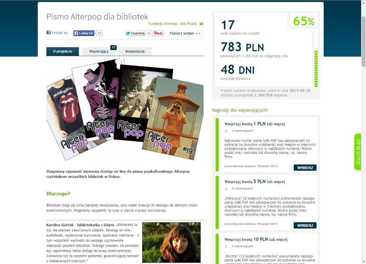 Odpowiedzią na to zapotrzebowanie jest akcja Fundacji Alterpop. Trzydziestego czerwca fundacja uruchomiła w portalu Wspieram.to akcję zbierania funduszy potrzebnych do stworzenia internetowego systemu udostępniającego ich pismo wszystkim bibliotekom w Polsce (a także polskojęzycznym bibliotekom za granicą).