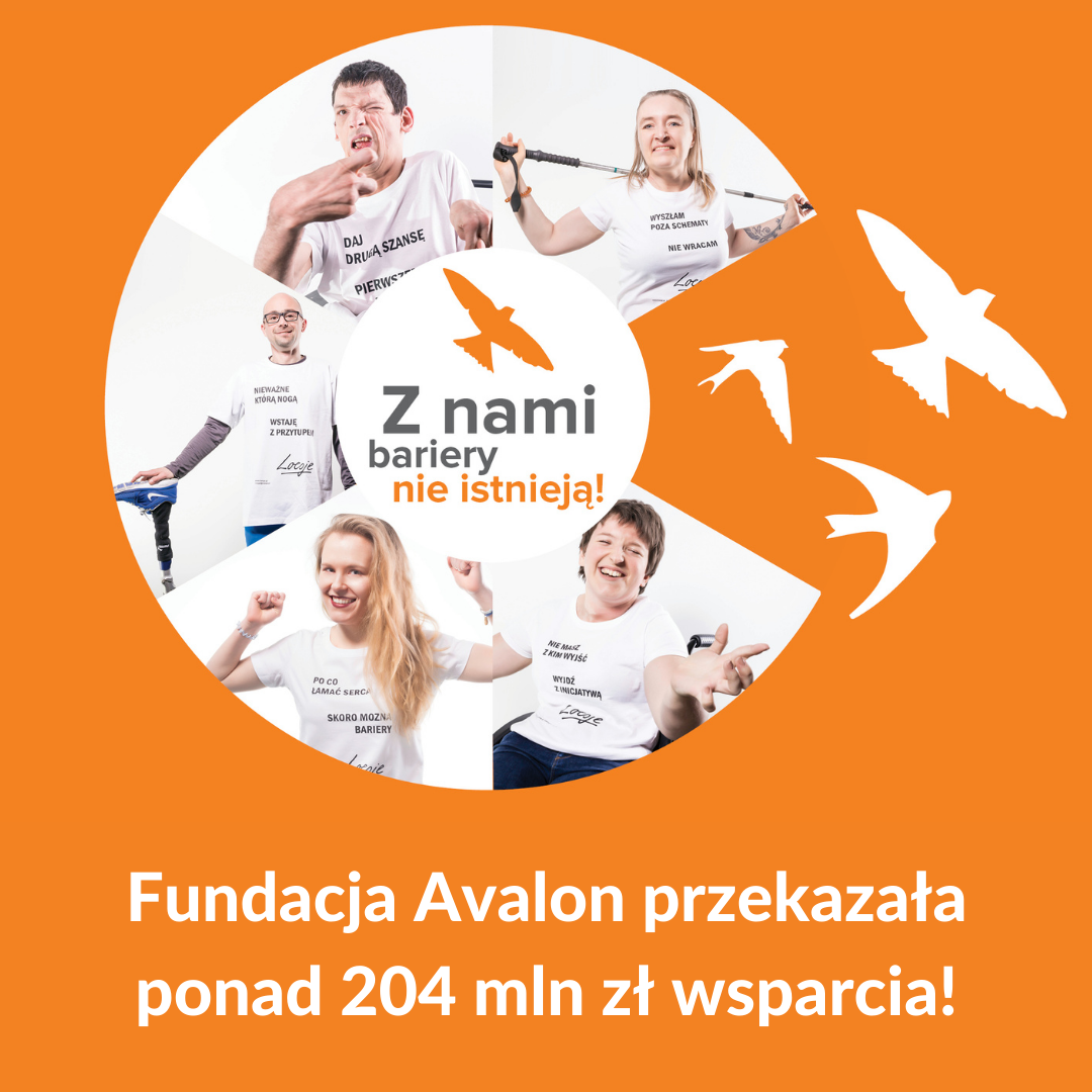 Fundacja Avalon, jedna z największych organizacji pozarządowych wspierających osoby z niepełnosprawnościami i przewlekle chore, przekazała swoim podopiecznym w formie dofinansowań do kosztów leczenia, rehabilitacji i codziennej egzystencji, już ponad 204 mln złotych.