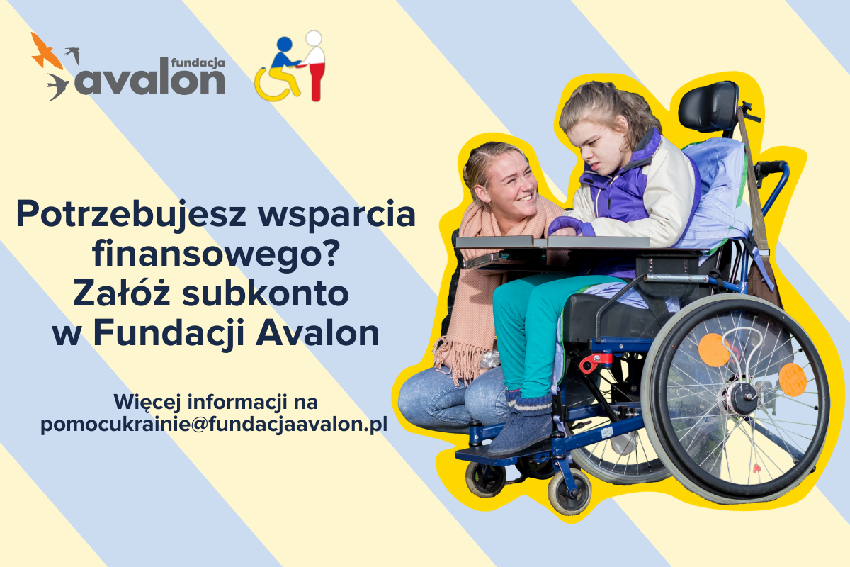 Wydatki związane z leczeniem, rehabilitacją, transportem czy kosztami życia codziennego są często dla uchodźców przybywających do Polski nie do udźwignięcia. Dlatego też Fundacja Avalon umożliwia uchodźcom z niepełnosprawnościami i przewlekle chorym dołączenie do grona podopiecznych i założenie subkonta, na którym można gromadzić darowizny oraz wpłaty z 1% podatku. Więcej informacji można znaleźć na stronie pomocukrainie.fundacjaavalon.pl.