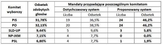 Zdaniem eksperta proporcjonalny charakter wyborów i sprawiedliwą reprezentację terytorialną zapewni ordynacja z pięcioma dużymi okręgami regionalnymi, w których obsadzanych byłoby od 8 do 12 mandatów oraz inny sposób przeliczania głosów na mandaty – zastąpienie metody d'Hondta (faworyzującej duże ugrupowania) neutralną metodą St. Laguë.
