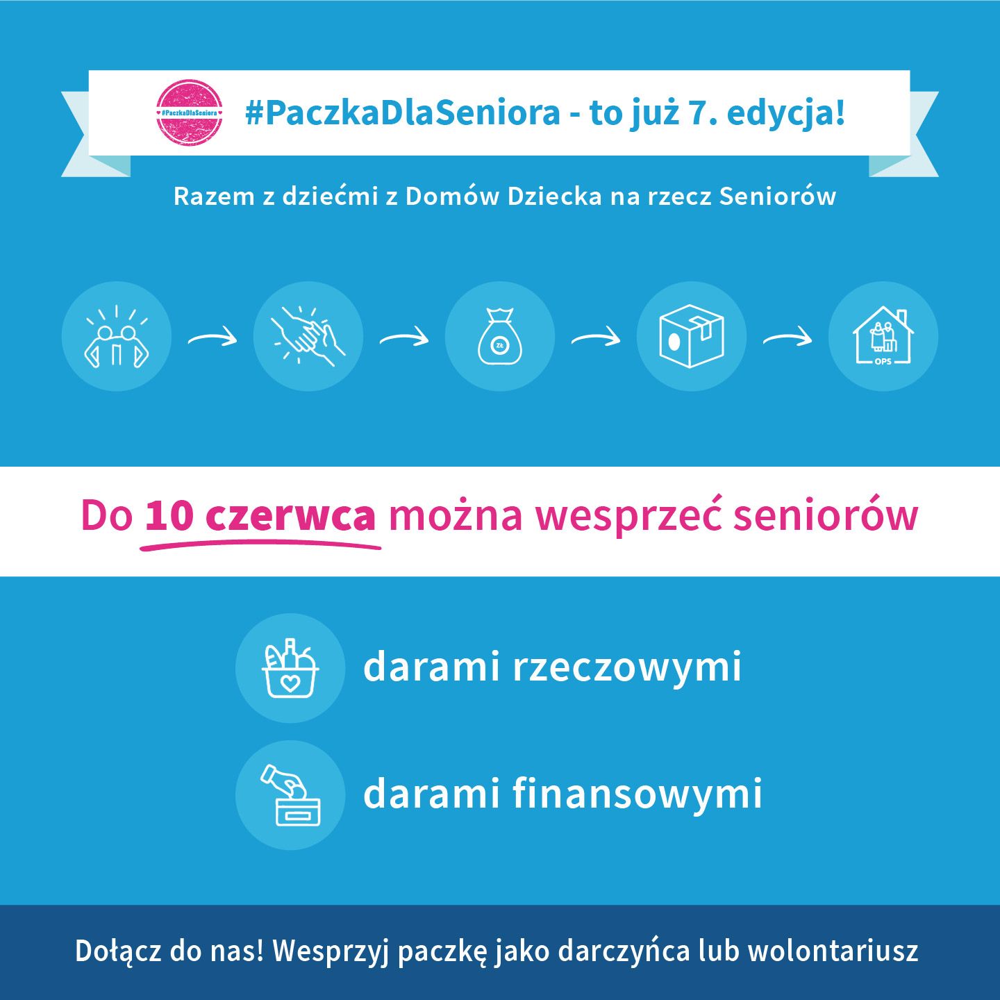 Problemy materialne to jedno z wyzwań starzejącego się społeczeństwa. Drugim, równie istotnym, jest wyizolowanie społeczne osób ze starszej grupy wiekowej, które bardzo negatywnie wpływa na ich ogólną kondycję. – Uwrażliwianie dzieci i młodzieży, ale także sąsiadów i lokalnych społeczności na potrzeby osób starszych z ich otoczenia może zmienić sytuację seniorów w przyszłości, dlatego potrzebne są działania edukacyjne, jak #PaczkaDlaSeniora, której 7. edycję rozpoczynamy 19 maja – mówi Bartłomiej Jojczyk, założyciel Fundacji Dobrych Inicjatyw.