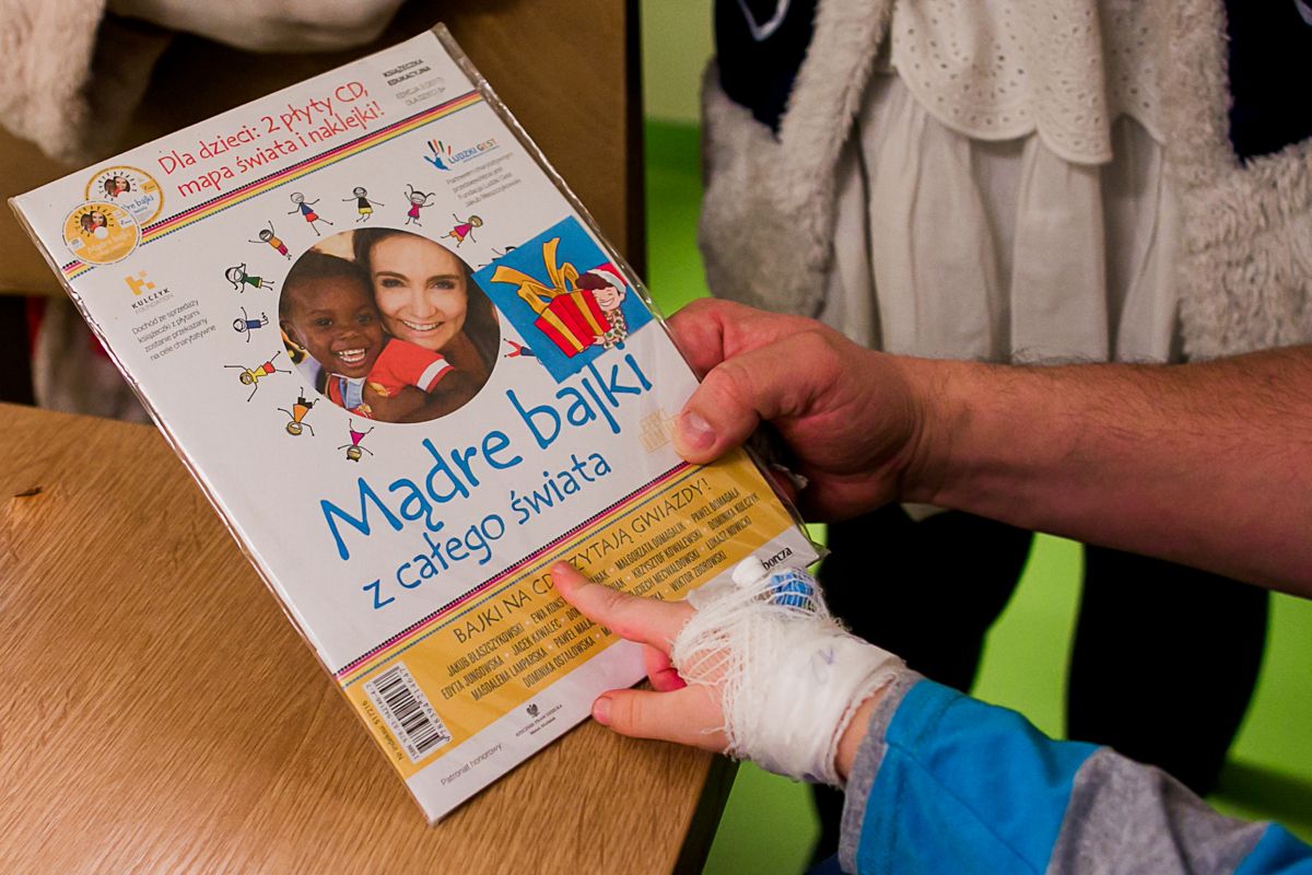 W szpitalu dziecięcym Święty Mikołaj podarował dzieciom 500 egzemplarzy książeczki z dwiema płytami „Mądre bajki z całego świata”. Tego dnia szpital, do którego dotarli, był najweselszym miejscem na świecie! Mało tego! Dodatkowo 100 egzemplarzy książki „Efekt Domina. Moc pomagania. Opowiadania o dzieciach całego świata” trafiło do Pokoi Rodzinnych Fundacji Ronalda McDonalda, która jest partnerem akcji. – W święta łączenie sił ma szczególną wartość! Chcemy zmieniać rzeczywistość szpitala w przyjazną dla dziecka – podkreśla Katarzyna Nowakowska, dyrektor wykonawcza Fundacji Ronalda McDonalda.