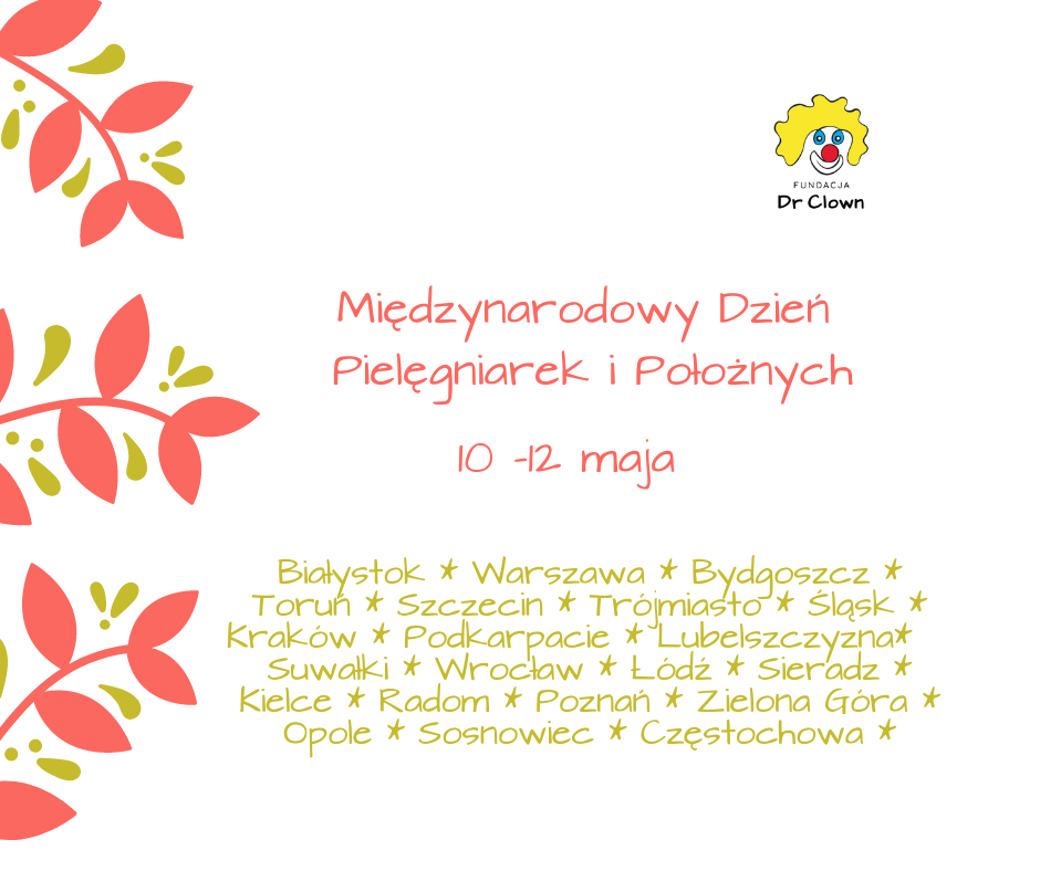 Wolontariusze Fundacji Dr Clown z okazji Międzynarodowego Dnia Pielęgniarek i Położnych, który obchodzony jest na całym świecie 12 maja, po raz kolejny przygotowali wyjątkową akcję dla pielęgniarek ze szpitali w 47 miastach w całej Polsce.