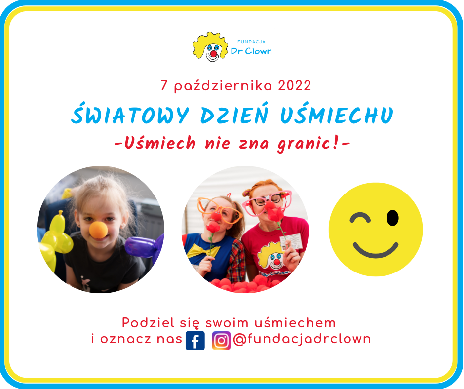 W piątek 7 października przypada Światowy Dzień Uśmiechu. Z tej okazji Fundacja Dr Clown organizuje akcję pod hasłem „Uśmiech nie zna granic”, zachęcając do dzielenia się uśmiechem i dobrą energią z innymi.