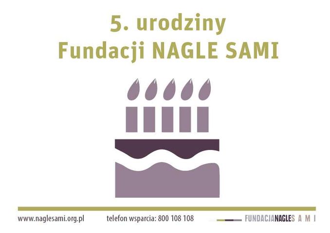 Fundacja Nagle Sami, która wspiera osoby w trudnym okresie żałoby 8 lipca będzie obchodzić 5. rocznicę powstania. Przez ten czas organizacja udzieliła wsparcia ponad 1000 osób i przeprowadziła ok. 1500 rozmów w telefonie wsparcia.