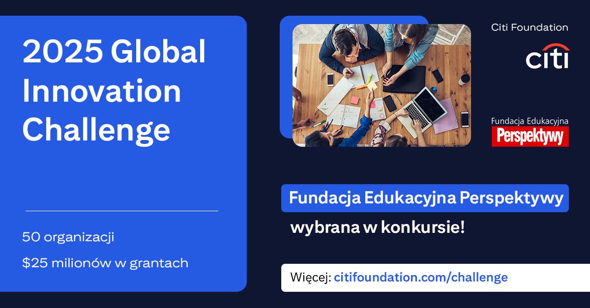 Citi Foundation wybrało Fundację Edukacyjną Perspektywy jako jedną z 50 organizacji społecznych, które wesprze w ramach Global Innovation Challenge 2025. Fundacja Edukacyjna Perspektywy otrzyma 500 000 USD oraz uzyska dostęp do globalnej społeczności organizacji pozarządowych i sieci edukacyjnej.