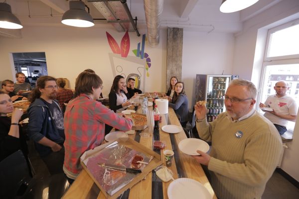 Nie mogło również zabraknąć stałego elementu każdego hackathonu - poczęstunku w formie pizzy. To tajemnica, lecz ten posiłek podnosi umiejętności projektowania aplikacji na kilka kolejnych godzin, dlatego jest tak popularny na wszystkich hackathonach.