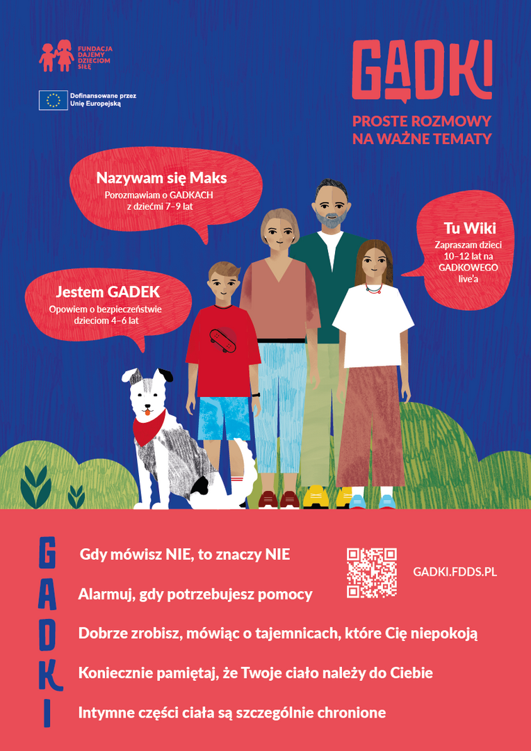 Fundacja Dajemy Dzieciom Siłę uruchomiła nową odsłonę programu „GADKI – proste rozmowy na ważne tematy”, wspierającego dorosłych w ochronie dzieci przed przemocą i wykorzystywaniem seksualnym. To kompleksowe narzędzie profilaktyczne przeznaczone dla nauczycieli, edukatorów, specjalistów oraz rodziców, którzy na co dzień towarzyszą dzieciom w rozwoju i budowaniu ich poczucia bezpieczeństwa.
