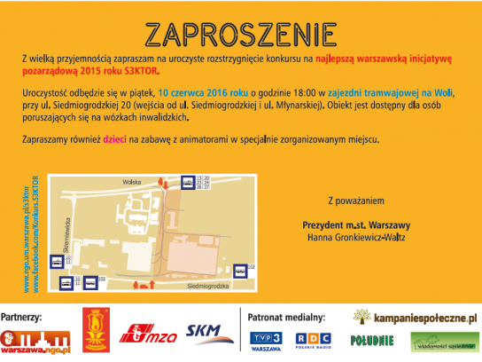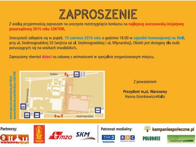 Które inicjatywy organizacji pozarządowych były najciekawsze w 2015 roku? Tego dowiemy się już 10 czerwca 2016 r. O 18:00 w zajezdni tramwajowej na Woli zacznie się gala Konkursu S3KTOR. Galę będzie można śledzić na żywo na stronie ngo.pl i warszawa.ngo.pl.