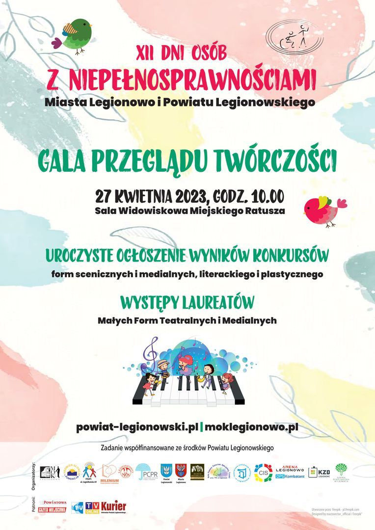 27 kwietnia 2023r. w sali widowiskowej legionowskiego Ratusza odbyła się Gala Przeglądu Twórczości XII Osób z Niepełnosprawnościami miasta Legionowa i powiatu Legionowskiego. Otwarcia Gali Twórczości dokonali wicestarosta powiatu legionowskiego Konrad Michalski oraz prezydent miasta Legionowa Roman Smogorzewski. Uroczystość urozmaiciły występy Laureatów konkursu Małych Form Teatralnych i Medialnych oraz znanego zespołu Shandy&Eva.
