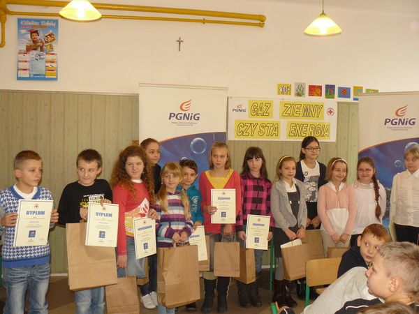Program edukacyjny przeprowadzono w klasach IV. Miał on charakter pogadanki z wyświetleniem prezentacji. Uczniom przekazane zostały informacje na temat pochodzenia gazu, sposobów wydobycia, transportu oraz jego zastosowań. Poznali zalety korzystania z gazu jako ekologicznego źródła energii oraz jego wpływu na środowisko naturalne. Uczniowie utrwalili zdobytą wiedzę poprzez pracę z komiksami: „Elementarz małego gazownika” oraz ”Przygody w świecie błękitnej energii” dostarczonych wraz z kredkami przez sponsora. Dzieci aktywnie brały udział w zajęciach. Zadaniem końcowym dla chętnych był konkurs plastyczny, w którym wzięło udział 31 uczniów. Komisja konkursowa zakwalifikowała spośród nich 18 prac, z których wyłoniono następujących zwycięzców:
