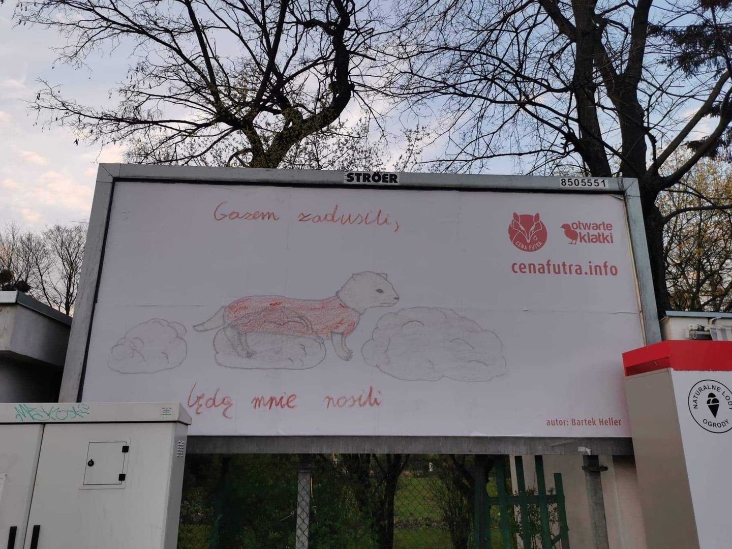 W ośmiu miastach w Polsce pojawiły się billboardy przedstawiające wzruszające rysunki zwierząt hodowanych na futro. Ich autorem jest Bartek Heller, czternastoletni mieszkaniec Białegostoku, a kampania outdoorowa jest częścią kampanii Stowarzyszenia Otwarte Klatki.