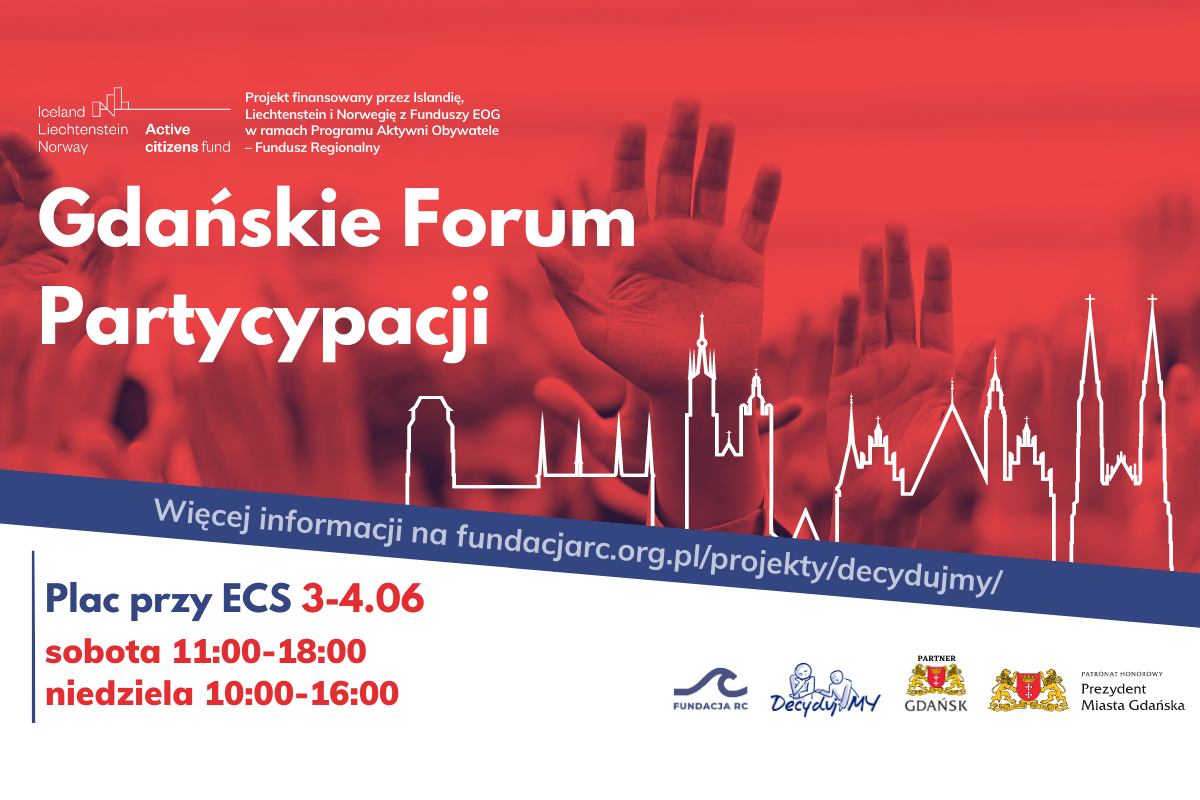 W weekend 3-4 czerwca 2023 roku organizujemy po raz pierwszy Gdańskie Forum Partycypacji. Chcemy pokazać różne strony partycypacji, lokalnych uczestników i aktywistów oraz opowiedzieć o dobrych praktykach i pozytywach dialogu partycypacyjnego. Spotkamy się podczas Strefy Społecznej na Święcie Wolności i Praw Obywatelskich. Znajdziesz nas na placu przy Europejskim Centrum Solidarności.