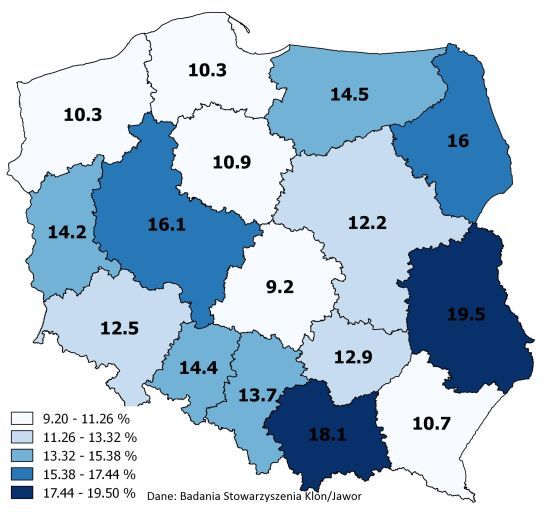 Są jednak na mapie Polski regiony, w których sektor kulturalny jest ponadprzeciętnie rozwinięty. W województwie lubelskim aż 19% organizacji jako główny obszar działań wskazuje kulturę i sztukę. Niewiele mniej (18%) w Małopolsce. Czy to znaczy, że w tych regionach organizacje kulturalne znalazły sposób na wyjście z impasu, który dotknął tę branżę?