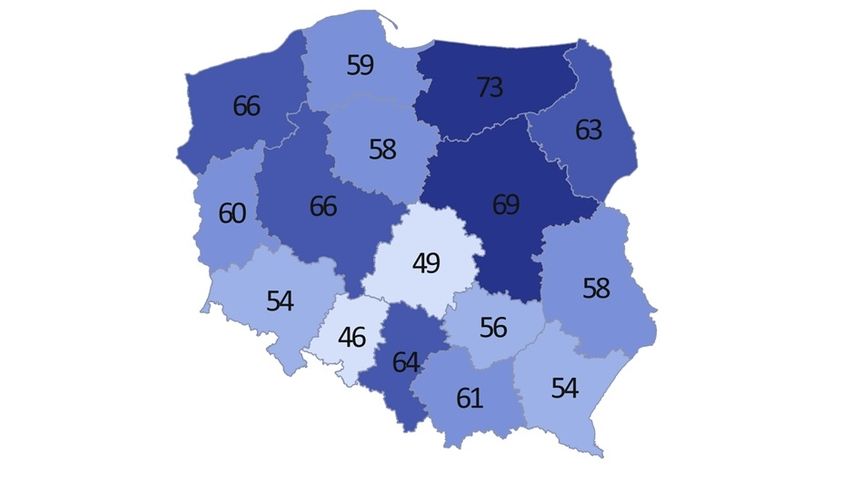 61% organizacji korzysta z pracy wolontariuszy. Stosunkowo najczęściej robią to stowarzyszenia i fundacje warmińsko-mazurskie. W tym regionie najmniej organizacji zatrudnia płatnych, stałych pracowników. Praca wolontariuszy może być więc niezbędnym uzupełnieniem społecznego zaangażowania członków organizacji lub pracy sporadycznych pracowników. Wolontariat jest także często wykorzystywany przez organizacje na Pomorzu Zachodnim, w Wielkopolsce oraz na Mazowszu. Z kolei najrzadziej ze wsparcia wolontariuszy korzystają organizacje z województw opolskiego (46%) oraz łódzkiego (49%).