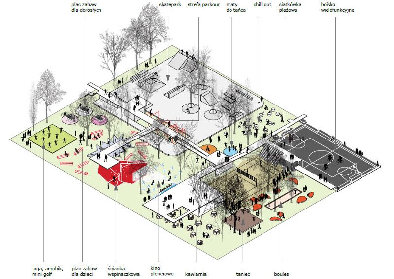 Projekt architektoniczny przygotowany dla pierwszej lokalizacji zostanie dostosowany do nowej lokalizacji – musi pasować do swojego nowego otoczenia. Ponadto skwer powinien być otwarty dla wszystkich pokoleń, funkcjonalny, atrakcyjny wizualnie i niedrogi w realizacji – takie ambitne założenia postawili przed sobą architekci projektu.