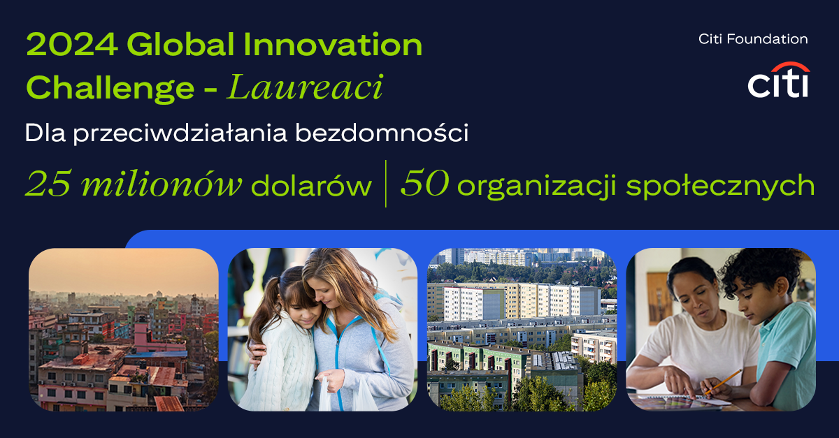 Fundacja Citi ogłosiła laureatów konkursu Global Innovation Challenge 2024, które otrzymają łącznie 25 milionów dolarów na walkę z problemem bezdomności. Wśród 50 laureatów z całego świata znalazła się Fundacja Polskie Centrum Pomocy Międzynarodowej.