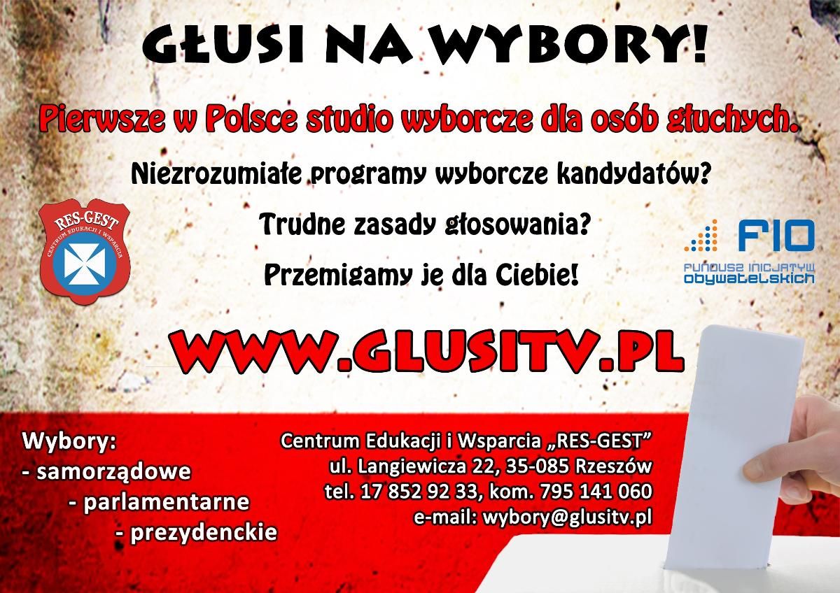 Swą działalność rozpoczyna pierwsze w Polsce studio wyborcze dla osób głuchych lub słabosłyszących. W portalu glusitv.pl prezentowane będą najważniejsze informacje dotyczące kampanii samorządowej (ordynacja wyborcza), programu kandydatów oraz bieżących wydarzeń politycznych, mających pomóc osobom niesłyszącym w podjęciu decyzji o oddaniu swego głosu.