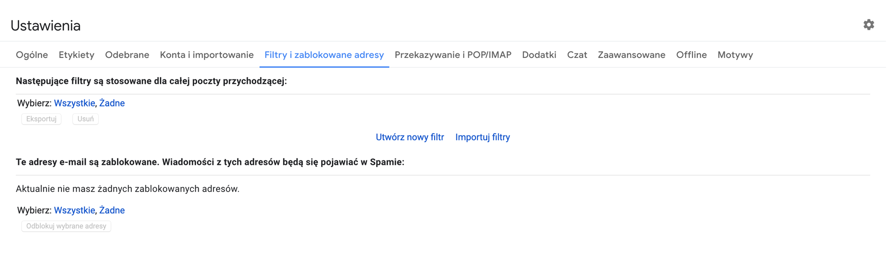 Inne propozycje wykorzystania filtrowania to np. kategoryzacja e-maili jako ważne/nieważne. Automatyczne przesłanie szablonu odpowiedzi, przekazanie wiadomości dalej. Filtry można tworzyć z poziomu wiadomości lub opcji zaawansowanych wyszukiwarki, a zarządzać przez kartę „Filtry i zablokowane adresy” w ustawieniach.