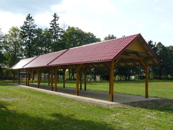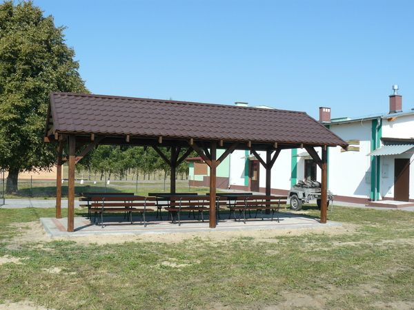Natomiast zagospodarowanie terenu boiska sportowego w Nowej Wsi polegało na wykonaniu 2 wiat o powierzchni około 25m2 oraz utwardzeniu 75 m2terenu nawierzchni kostką brukową. Każda z wiat zbudowana została z konstrukcji drewnianej z dachem pokrytym z blachodachówki. Kosz inwestycji, przy współudziale Gminnego Zrzeszenia Ludowe Zespoły Sportowe, to 17.540,01 zł, z czego dofinasowanie z samorządu województwa to 8.000 zł.