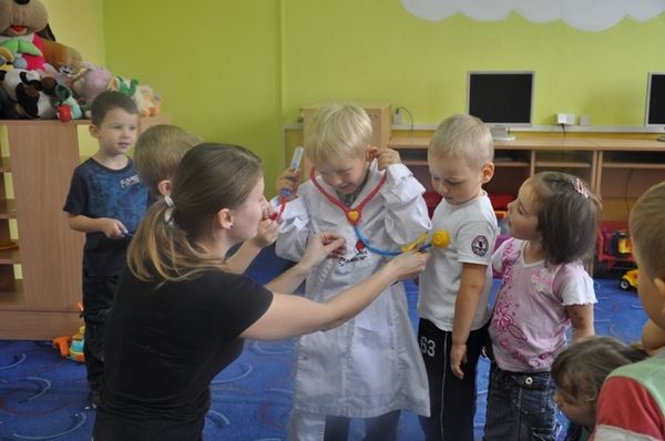 Dzieci z grupy zabawowej z Prątnicy miały okazję nowatorską metodą badawczą poznać zawód lekarza. Maluchy osłuchiwały się zabawkowym stetoskopem lekarskim, stworzyły także własną apteczkę pierwszej pomocy oraz opiekowały się swoim chorym misiem. Zabawnym elementem projektu było owinięcie bandażem pani wychowawczyni Agnieszki Rozwadowskiej.