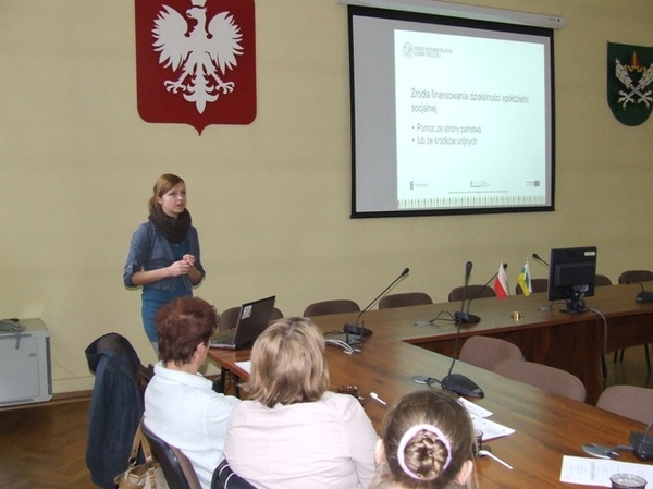 Zorganizowano także spotkanie dotyczące tworzenia spółdzielni socjalnych, które poprowadziła Justyna Ocalewicz, doradca w Ośrodku Wspierania Inicjatyw Ekonomii Społecznej w Elblągu. Uczestnicy zadania mieli okazję dowiedzieć się dla kogo i w jakim celu są one tworzone.