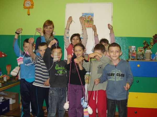 Podczas warsztatów animacyjnych robiły tzw. „poiki”, które służą do nauki tańca z ogniem. Do ich wykonania posłużyły skarpetki, skrawki materiałów, igła, nitka i dobre chęci uczestników. Dzieci bardzo zaangażowały się w zajęcia i dokładnie wykonywały poszczególne etapy prac. Przy okazji ćwiczyły przy tym cierpliwość i staranność.