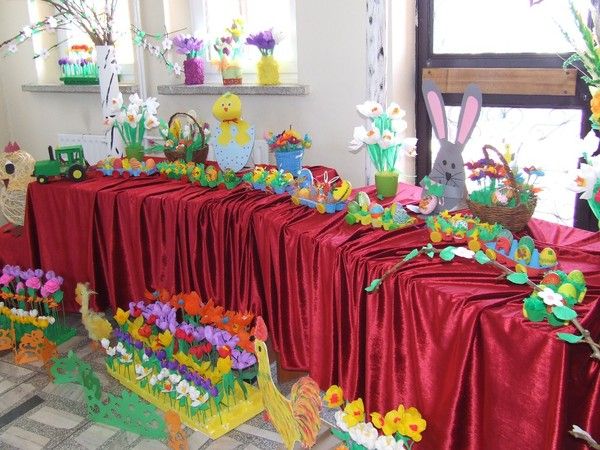 Świąteczne prace zostały wykonane ręcznie różnymi technikami plastycznymi. Młodzież zaproponowała rękodzieło artystyczne, ponieważ daje ono możliwość wykorzystywania niepotrzebnych materiałów dostępnych w każdym domu. Chcieli przez to wesprzeć akcję ochrony środowiska. Na wystawce można podziwiać m.in.: ażurowe jaja, kurczaczka oraz królika, prace z masy papierowej, kwiaty z bibuły, jajka ozdobione sznurkiem twist-art, kosz wykonany z wikliny papierowej, a także papierowe witraże. Do przygotowania wystawy wykorzystano materiały pochodzące z surowców wtórnych tj.: karton, nakrętki, folia LDP, gazeta, papier i inne.
