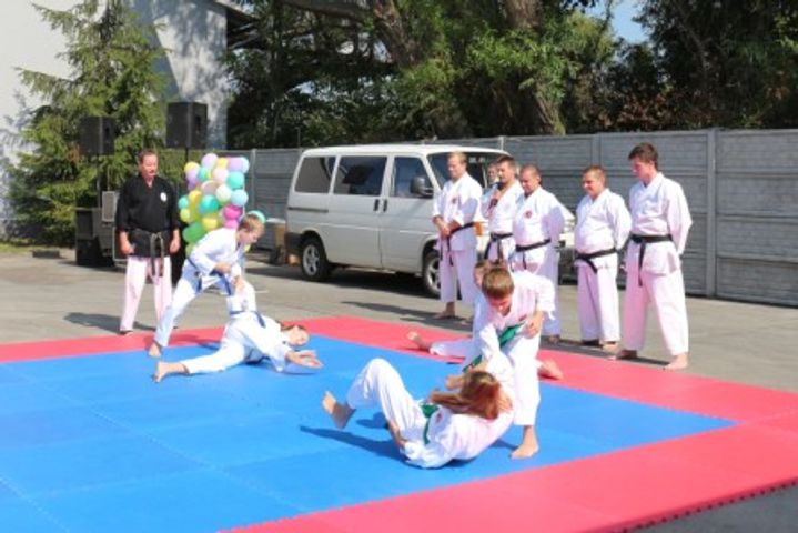 Reprezentanci klubu karate shotokan (mistrzowie karate: Waldemar Szwedek - 7 DAN, Mieczysław Polewski - 4 DAN, Mirosław Sobkowiak – 4 DAN, Marcin Danek – 2 DAN, Dariusz Danek – 1 DAN, Dawid Matuszak – 1 DAN oraz uczniowie: Daria Pietrzyk – 5 Kyu, Dawid Mila – 5 Kyu, Patrycja Niewrzędowska – 5 Kyu, Milena Janicka – 6 Kyu, Joachim Janicki – 6 Kyu) pokazali elementy treningu karate: elementy kihonu, czyli wielokrotnego powtarzania bloków, uderzeń i kopnięć, elementy kumite, czyli walki sportowej, prowadzonej z pełną kontrolą uderzeń, elementy shiho, czyli kontrataków wyprzedzających w różnych kierunkach, oraz kata, czyli układów technik wykorzystywanych w walce z kilkoma przeciwnikami, po wykorzystanie bloków, przechwytów, podcięć, dźwigni i rzutów w samoobronie, w tym przed atakiem kijem i innymi niebezpiecznymi narzędziami, np. nożem. Na koniec zaprezentowano pokaz odporności na ból i uderzenia. Karatecy łamali na swoich partnerach deski, uderzając nimi z całych sił w brzuchy, ramiona, plecy. Do tego dodali zaprezentowanie tameshi waza, czyli element treningu mistrzów polegający na łamaniu twardych przedmiotów przy pomocy np. techniki shuto, czyli uderzenia kantem dłoni czy haito – uderzenie przedramieniem.