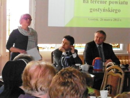 Kolejni prelegenci: Janusz Sikora Wicestarosta Gostyński, Maria Krupecka Dyrektor Wydziału Polityki Społecznej Wielkopolskiego Urzędu Wojewódzkiego w Poznaniu, Teresa Klonowska Kierownik MGOPS w Gostyniu, Alicja Data Zastępca Dyrektora PCPR w Gostyniu i Mirosław Sobkowiak Dyrektor PCPR w Gostyniu przedstawili gminny system wspierania rodziny i powiatowy pieczy zastępczej, omówili zmiany związane z wprowadzaniem nowych działań na rzecz dziecka, a także szanse i bariery towarzyszące realizacji ustawy. Dyrektor Maria Krupecka przedstawiła ocenę realizację ustawy w Wielkopolsce.