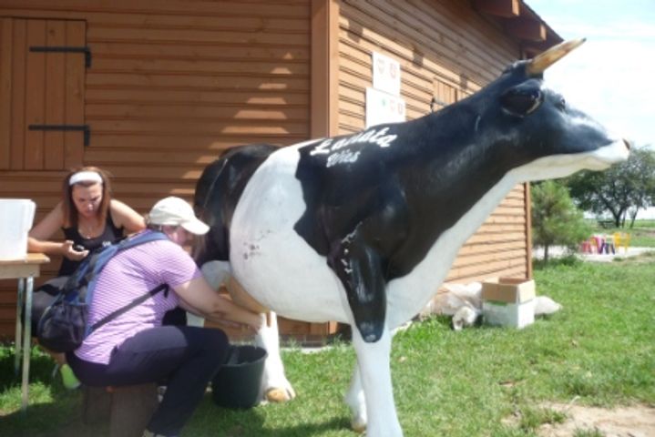 Kolejne atrakcje, z których korzystali uczestnicy to przejażdżki bryczką po wiosce, czy gra terenowa „Poszukiwanie cielaka”. Świetnej zabawy dostarczyły konkurencje sportowe, gry i zabawy zręcznościowe. – Najwięcej śmiechu było przy rzucaniu piłeczkami do kany od mleka i rzucaniu krążków na łeb krowy. – opowiada jeden z uczestników – A najwięcej emocji wzbudziło dojenie sztucznej krowy, próbował tej czynności każdy, choć wcale nie było łatwo!